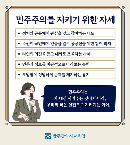 ±¤Áֽñ³À°Ã»(±³À°°¨ ÀÌÁ¤¼±)ÀÌ ¿À´Â 12¿ù 3~14ÀÏ ¡®2024³â 12¡¤3 ºñ»ó°è¾ö¡¯ 1³âÀ» ¸Â¾Æ ¡®2025³â Çå¹ý°ú ¹ÎÁÖÁÖÀÇ ¼öÈ£ ±â°£¡¯À» ¿î¿µÇÑ´Ù.