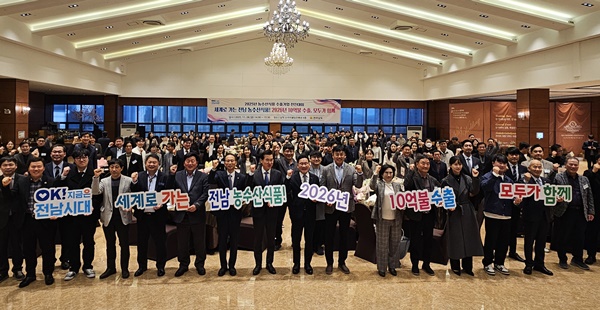 Àü¶ó³²µµ´Â 28ÀÏ ³²¾Ç ½ºÄ«ÀÌ¿þµùÄÁº¥¼Ç¿¡¼ ³ó¼ö»ê ¼öÃâ±â¾÷, ¼öÃâ À¯°ü±â°ü µî 200¿© ¸íÀÌ Âü¼®ÇÑ °¡¿îµ¥ ¡®2025 ³ó¼ö»ê½Äǰ ¼öÃâ±â¾÷ ÀüÁø´ëȸ¡¯¸¦ ¿¾î 2026³â ¼öÃâ 10¾ï ´Þ·¯ ´Þ¼º °áÀǸ¦ ´ÙÁ³´Ù.