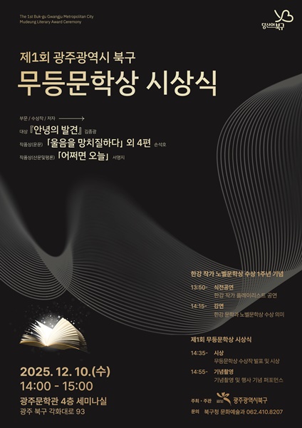 | ±¤Áֽà ºÏ±¸, ÇѰ ÀÛ°¡ ¼ö»ó ±â³äÀÏ¿¡ ¸ÂÃç ¡®Á¦1ȸ ¹«µî¹®Çлó ½Ã»ó½Ä¡¯ °³ÃÖ ¢º 10ÀÏ ¿ÀÈÄ 2½Ã ±¤ÁÖ¹®Çаü¿¡¼ Á¦1ȸ ¹«µî¹®Çлó ½Ã»ó½Ä °³ÃÖ...ÃÑ»ó±Ý 3õ¸¸ ¿ø |