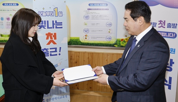 À̳¯ ÀÌÁ¤¼± ±³À°°¨Àº 2¿ù 1ÀÏÀÚ·Î ¼±¤ÃÊ ¹ß·ÉÀ» ¹ÞÀº ±³À°ÇàÁ¤Á÷ 9±Þ ½ÅÇýÁø ÁÖ¹«°üÀÇ º¹¹« ¼±¼¸¦ ¹Þ°í ÀÓ¿ëÀåÀ» ¼ö¿©Çß´Ù. ÀÌ¾î »õ·Î¿î Ãâ¹ßÀ» ÃàÇÏÇÏ´Â ¸¶À½°ú ¼ÒÁßÇÑ ÀÎÀ縦 Ű¿öÁֽŠÁÖ¹«°üÀÇ °¡Á·¿¡°Ô °¨»çÀÇ ¶æÀ» ÀüÇϱâ À§ÇÑ ÃàÇÏ ÆíÁö¸¦ Àü´ÞÇß´Ù.