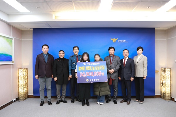 ±¤ÁÖ°æÂûûÀº ¿À´Ã 10ÀÏ ¾Èº¸ÀÚ¹®ÇùÀÇȸ(ȸÀå ¾çÁø¼®) ÀÓ¿øÁøÀÌ Âü¼®ÇÑ °¡¿îµ¥ ¼³ ¸íÀýÀ» ¾ÕµÎ°í Å»ºÏ¹Î¿¡°Ô »ç¶û³ª´® Áö¿ø±Ý 1,000¸¸¿øÀ» Àü´ÞÇß´Ù.