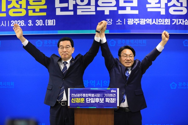 ´õºÒ¾î¹ÎÁÖ´ç Àü³²¡¤±¤ÁÖ ÅëÇÕÆ¯º°½ÃÀå °æ¼±¿¡ ³ª¼± ½ÅÁ¤ÈÆ È帰¡ °±âÁ¤ Èĺ¸¿ÍÀÇ ´ÜÀÏÈ °æ¼±À» °ÅÃÄ ´ÜÀÏÈĺ¸·Î È®Á¤µÆ´Ù. ½Å È帴 30ÀÏ ¹ßÇ¥ÇÑ ´ÜÀÏÈ ½Â¸® °¨»çÀÇ ±Û¿¡¼ °±âÁ¤ ½ÃÀåÀÇ °á´Ü¿¡ ±íÀº Á¸°æ°ú °¨»çÀÇ ¶æÀ» ¹àÈ÷¸ç, º»¼± ½Â¸®¿Í Àü³²¡¤±¤ÁÖ ÅëÇÕ ¿Ï¼ö ÀÇÁö¸¦ °Á¶Çß´Ù.