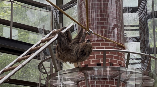 ³ª¹«´Ãº¸´Â ´ëºÎºÐ ³ª¹µ°¡Áö µî¿¡ ¹ßÅéÀ» °É°í °Å²Ù·Î ¸Å´Þ·Á »ýȰÇÑ´Ù. ÀÌ¿¡ ¿ìÄ¡µ¿¹°¿øÀº Áö»ó 5m ³ôÀÌ¿¡ ³ª¹«´Ãº¸°¡ ÀÚÀ¯·Ó°Ô ¸Å´Þ¸®±â À§ÇÑ ÁÙÀ» ¼³Ä¡, °ü¶÷°´ ¸Ó¸® À§·Î ³ª¹«´Ãº¸°¡ À̵¿ÇÒ ¼ö ÀÖµµ·Ï »çÀ° °ø°£À» Á¶¼ºÇß´Ù.