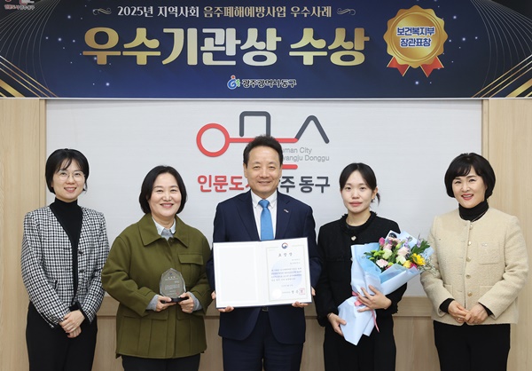 ±¤ÁÖ µ¿±¸(ûÀå ÀÓÅÃ)´Â ÃÖ±Ù ¼¿ï Áß±¸ ·Î¾âÈ£ÅÚ¿¡¼ ¿¸° ¡®À½ÁÖÆóÇØ¿¹¹æÀÇ ´Þ ±â³ä½Ä¡¯¿¡¼ 2025³â À½ÁÖÆóÇØ¿¹¹æ »ç¾÷ ¿ì¼ö»ç·Ê ¿ì¼ö±â°üÀ¸·Î ¼±Á¤µÅ º¸°Çº¹ÁöºÎ Àå°ü ǥâÀ» ¼ö»óÇß´Ù°í ¹àÇû´Ù.