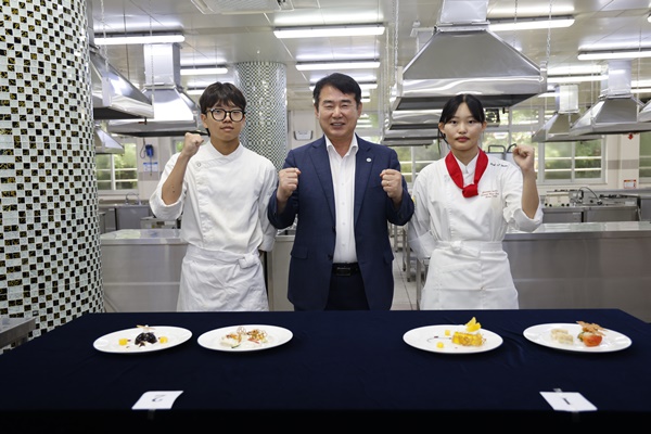 <»çÁø1> ÀÌÁ¤¼± ±¤Áֽñ³À°°¨(°¡¿îµ¥)ÀÌ 4ÀÏ ±¤ÁÖÀÚ¿¬°úÇÐ°í¿¡¼ Àü±¹±â´É°æ±â´ëȸ ¿ä¸® Á÷Á¾¿¡ Âü¿©ÇÏ´Â Çлý 2¸íÀ» °Ý·ÁÇÑ ÈÄ ±â³ä»çÁøÀ» ÃÔ¿µÇϰí ÀÖ´Ù.