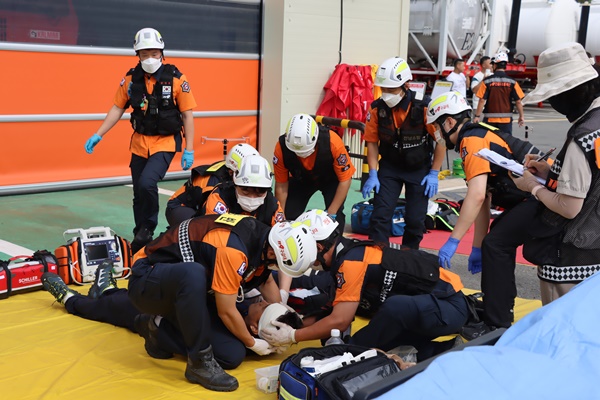 ÇöÀå¿¡¼­´Â ȯÀںзù, ÀÀ±Þóġ, ÀÌ¼Û µîÀÇ ÀýÂ÷°¡ ½ÇÁ¦Ã³·³ ÁøÇàµÇ¸ç ´Ù¼ö»ç»óÀÚ ¹ß»ý ½Ã ÇÊ¿äÇÑ ´ëÀÀ ¸Å´º¾ó°ú Çù¾÷ ±¸Á¶°¡ Á¦´ë·Î ÀÛµ¿ÇÏ´ÂÁö ÁßÁ¡À» µÎ°í ÈÆ·ÃÀÌ ÀÌ·ïÁ³´Ù.