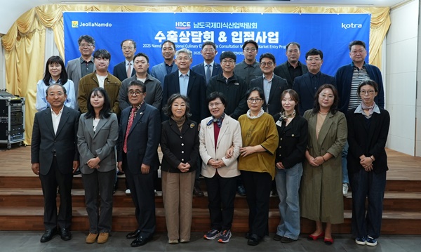È«¾çÇö ³²µµ±¹Á¦¹Ì½Ä»ê¾÷¹Ú¶÷ȸ »ç¹«±¹ÀåÀº ¡°2025 ³²µµ±¹Á¦¹Ì½Ä»ê¾÷¹Ú¶÷ȸ´Â ´Ü¼øÇÑ Àü½ÃÇà»ç¸¦ ³Ñ¾î ³²µµ ½Äǰ±â¾÷ÀÌ ¼¼°è·Î µµ¾àÇÏ´Â ½ÇÁúÀû ¼öÃâ ºñÁî´Ï½ºÀÇ À塱À̶ó¸ç ¡°´ëÇѹ«¿ªÅõÀÚÁøÈï°ø»ç¿Í ÇÔ²² °³ÃÖÇÑ À̹ø ¼öÃâ»ó´ãȸ¸¦ °è±â·Î Àü³²ÀÇ ¿ì¼öÇÑ ½Äǰ°ú ½ÄÀÚÀç°¡ ¼¼°è·Î ´õ¿í ÈûÂ÷°Ô »¸¾î°¡±æ ±â´ëÇÑ´Ù¡±°í ¸»Çß´Ù.