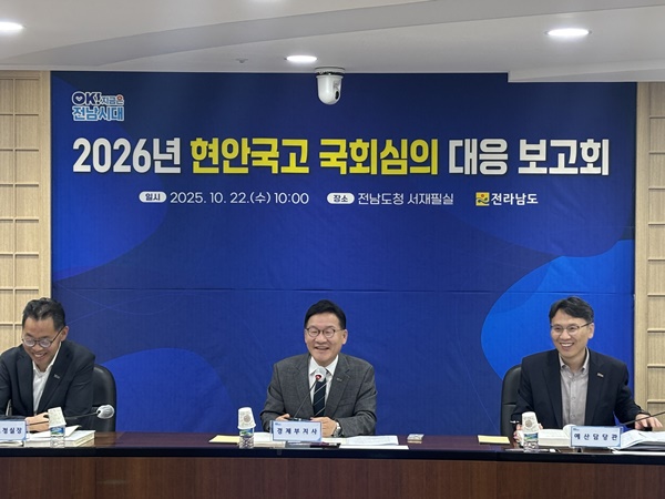 Àü¶ó³²µµ´Â 22ÀÏ µµÃ» ¼ÀçÇʽǿ¡¼ ¡®2026³âµµ ±¹°í Çö¾È»ç¾÷ ±¹È¸½ÉÀÇ ´ëÀÀ º¸°íȸ¡¯¸¦ ¿°í ±¹È¸ ¿¹»ê½ÉÀÇ¿¡ ¾Õ¼ ÁÖ¿ä Çö¾È »ç¾÷ÀÇ ±¹°í È®º¸ Àü·«À» Á¡°ËÇß´Ù.