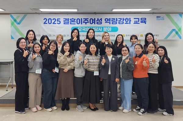 Àü³²¿©¼º°¡Á·Àç´ÜÀº 11¿ù 7ÀÏ(±Ý) ¡¸2025 °áÈ¥ÀÌÁÖ¿©¼º ºÐ¾ßº° ¿ª·®°È ±³À°¡¹ÀÇ ¸ðµç °úÁ¤À» ¼º°øÀûÀ¸·Î ¸¶¹«¸®Çß´Ù°í ¹àÇû´Ù. À̹ø ±³À°Àº µµ³» °áÈ¥ÀÌÁÖ¿©¼ºÀÇ Àü¹®¼ºÀ» ³ôÀ̰í Ȱµ¿ ¿µ¿ªÀ» È®ÀåÇϱâ À§ÇØ ±âȹµÈ ½ÉÈ °úÁ¤À¸·Î ´Ù¹®ÈÀÌÇØ°»ç, ÀÌÁß¾ð¾î°»ç, ¸ð±¹¾î»ó´ã»ç ¼¼ ºÐ¾ß¿¡¼ ÃÑ 64¸íÀÇ ±³À°»ýÀÌ Âü¿©Çß´Ù.