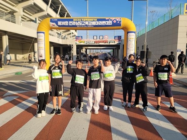 Áö³ 11¿ù 23ÀÏ, ¸ñÆ÷Á¾ÇÕ°æ±âÀå ÀÏ¿ø¿¡¼ ¿¸° 'Á¦96ÁÖ³â Çлýµ¶¸³¿îµ¿±â³ä Á¦38ȸ Àü¶ó³²µµ±³À°°¨¹è ¸¶¶óÅæ´ëȸ'´Â ¾à 1¸¸¿© ¸íÀÇ Âü°¡ÀÚµéÀÇ ¿±â·Î ¶ß°Å¿ü´Ù. ƯÈ÷, ¿ÃÇØ óÀ½À¸·Î ±è´ëÁß ¸¶¶óÅæ´ëȸ¿Í °øµ¿ °³ÃÖµÇ¾î ±× Àǹ̸¦ ´õÇÑ À̹ø ´ëȸ¿¡¼, Àü³²ÀÇ ÀÛÀºÇб³ÀÎ °í´ÞÃʵîÇб³(±³Àå Á¶Çü¾Æ)ÀÇ 8¸í ÇлýµéÀÌ ÆîÄ£ ¡®Ã¹ ¸¶¶óÅæ´ëȸ ÃâÀü Àü¿ø ¿ÏÁÖ¡¯ÀÇ µµÀü ½ºÅ丮°¡ Å« °¨µ¿À» ¼±»çÇß´Ù.