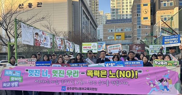 ±¤ÁÖµ¿ºÎ±³À°Áö¿øÃ» À̸í¼÷ ±³À°ÀåÀº ¡°Çб³Æø·Â ¾ø´Â ¾ÈÀüÇÑ ±³À°È¯°æÀ» ¸¸µé±â À§Çؼ´Â Çб³ ±¸¼º¿ø ¸ðµÎÀÇ °ü½É°ú Âü¿©°¡ ÇÊ¿äÇÏ´Ù¡±¸ç ¡°±â°ü¿¡¼´Â Çлý, ±³Á÷¿ø, Çкθ𰡠ÇÔ²² ¿¹¹æ ¹®È¸¦ È®»êÇØ ³ª°¥ ¼ö ÀÖµµ·Ï ÇÊ¿äÇÑ Áö¿ø°ú ³ë·ÂÀ» Áö¼ÓÇØ ³ª°¡°Ú´Ù¡±°í ¸»Çß´Ù.