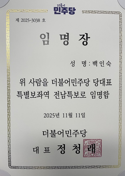 | ¹éÀμ÷ ¿©¼ö½ÃÀÇȸ ÀÇÀå, ´õºÒ¾î¹ÎÁÖ´ç Á¤Ã»·¡ ´ç´ëÇ¥ Ưº¸ ÀÓ¸í Áö¿ª ±â¹Ý ¿©¼º ¸®´õ½Ê ÀÎÁ¤, Áß¾Ó´ç-Áö¹æ ¿¬°áÃà ¿ªÇÒ ±â´ë |