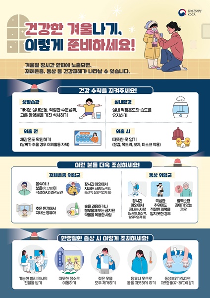 Àü³²µµ´Â ÇÑ·©Áúȯ ¿¹¹æÀ» À§ÇØ ¿ÜÃâ Àü ±â¿ÂÀ» È®ÀÎÇϰí, ³»º¹À̳ª ¾ãÀº ¿ÊÀ» ¿©·¯ °ã Âø¿ëÇØ ü¿ÂÀ» À¯ÁöÇÒ °ÍÀ» ±Ç°íÇß´Ù. ¶Ç ¸ðÀÚ¿Í ¸ñµµ¸®, Àå°©, ¸¶½ºÅ© µîÀ» Âø¿ëÇØ ½Åü ³ëÃâÀ» ÃÖ¼ÒÈÇϰí, ½Ç³»¿¡¼µµ ³¹æÀÌ ÃæºÐÇÏÁö ¾ÊÀ» °æ¿ì º¸¿Â¿¡ °¢º°È÷ ½Å°æ ½á¾ß ÇÑ´Ù°í °Á¶Çß´Ù.