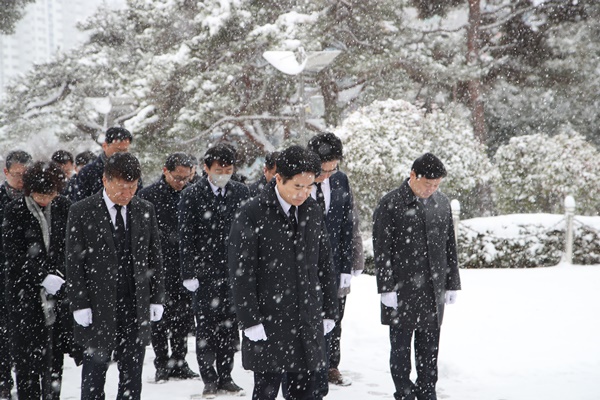 À̳¯ ½Ã¹«½ÄÀº ±è´ëÁß ±³À°°¨À» ºñ·ÔÇÑ °£ºÎÁø°ú 1¿ù 1ÀÏ ÀÚ º»Ã» ÀüÀÔ Á÷¿ø µîÀÌ Âü¼®ÇÑ °¡¿îµ¥ ÁøÇàµÆÀ¸¸ç, ÇöÀå¿¡ Âü¼®ÇÏÁö ¸øÇÑ Á÷¿øµéÀº ¿µ»ó ½Ã½ºÅÛÀ» ÅëÇØ ÇÔ²²Çß´Ù.