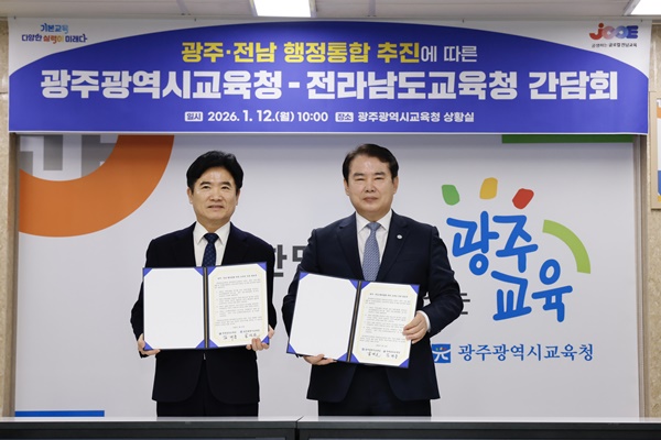 ÀÌÁ¤¼± ±¤ÁÖ±¤¿ª½Ã±³À°°¨°ú ±è´ëÁß Àü¶ó³²µµ±³À°°¨Àº 12ÀÏ ±¤Áֽñ³À°Ã» »óȲ½Ç¿¡¼­ ±¤ÁÖ¡¤Àü³² ÇàÁ¤ ÅëÇÕ¿¡ Âù¼ºÇϰí Çù·ÂÀ» ´ÙÁüÇÏ´Â °øµ¿¹ßÇ¥¹®À» äÅÃÇß´Ù