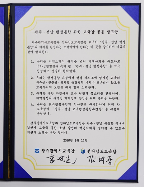 ±¤ÁÖ¡¤Àü³² ÇàÁ¤ÅëÇÕ À§ÇÑ ±³À°°¨ °øµ¿ ¹ßÇ¥¹®