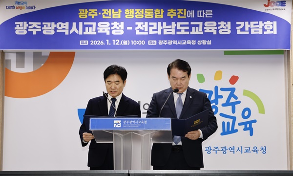 ±¤ÁÖ±¤¿ª½Ã±³À°Ã»(±³À°°¨ ÀÌÁ¤¼±)°ú Àü¶ó³²µµ±³À°Ã»(±³À°°¨ ±è´ëÁß)Àº 12ÀÏ ±¤ÁÖ¡¤Àü³² ÇàÁ¤ ÅëÇÕ¿¡ Âù¼ºÇϰí Çù·ÂÀ» ´ÙÁüÇÏ´Â °øµ¿¹ßÇ¥¹®À» äÅÃÇß´Ù.