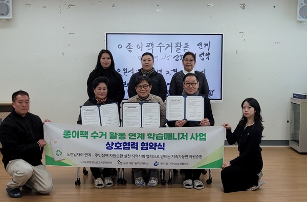 ±¤ÁÖ µ¿±¸ °è¸²1µ¿Àº Áö¿ª ³» Á¾ÀÌÆÑ ºÐ¸®¹èÃâ Ȱ¼ºÈ¿Í ÀÚ¿ø¼øÈ¯ ½Çõ È®»êÀ» À§ÇØ (»ç)´ÃǪ¸¥Ã»¼Ò³â±³À°¹®È¼¾ÅÍ, °è¸²1µ¿ ÁÖ¹ÎÀÚġȸ, °è¸²1µ¿ Áö¿ª»çȸº¸ÀåÇùÀÇü¿Í ÇÔ²² ¡®Á¾ÀÌÆÑ ¼ö°Å Ȱµ¿ ¿¬°è ÇнÀ¸Å´ÏÀú »ç¾÷ ÃßÁøÀ» À§ÇÑ »óÈ£Çù·Â Çù¾à¡¯À» ü°áÇß´Ù°í ¹àÇû´Ù.